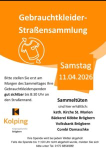 Kommentare deaktiviert für Kolping ruft zur Gebrauchtkleider – Straßensammlung am Samstag den 11.04.2026 auf! | Abgelegt unter Bilder